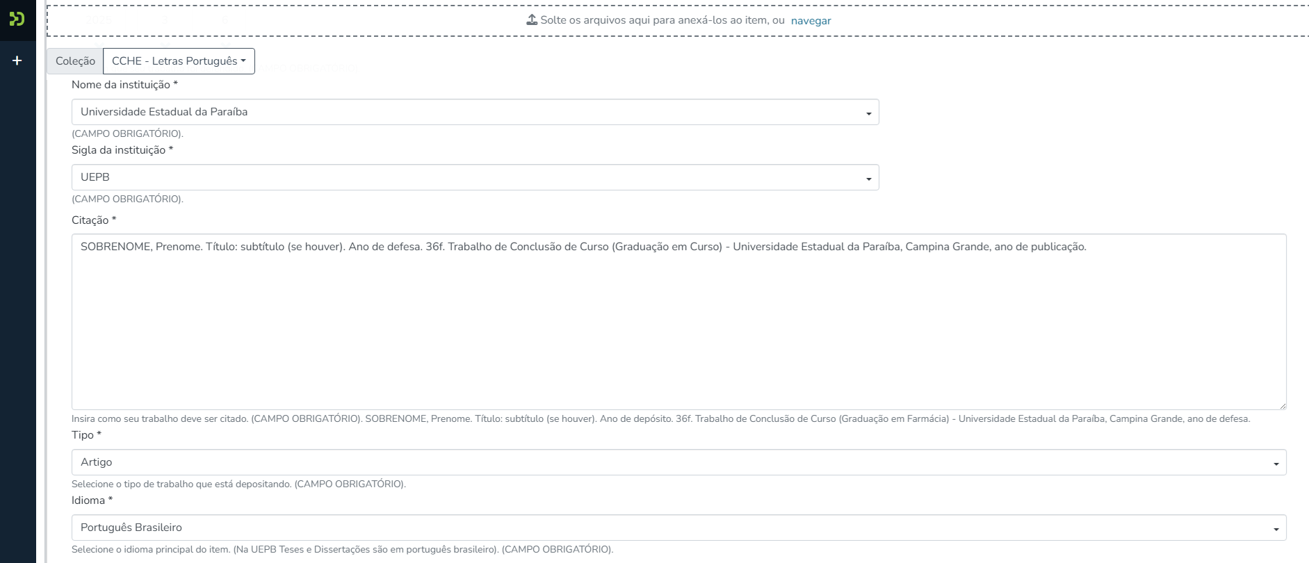 É obrigatório que o arquivo final do trabalho acadêmico esteja em formato PDF/A.