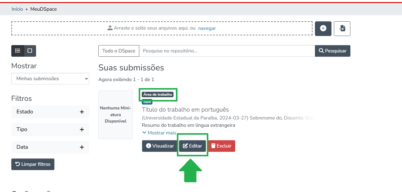 Para depositar o seu TCC, você deve acessar: https://repositorio.uepb.edu.br e seguir para o passo 2: